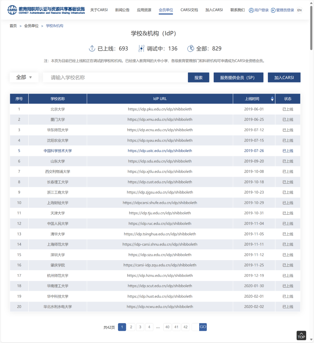点击网址https://www.carsi.edu.cn/IdPlist.html即可查询自己的学校是否在CARSI名单内。