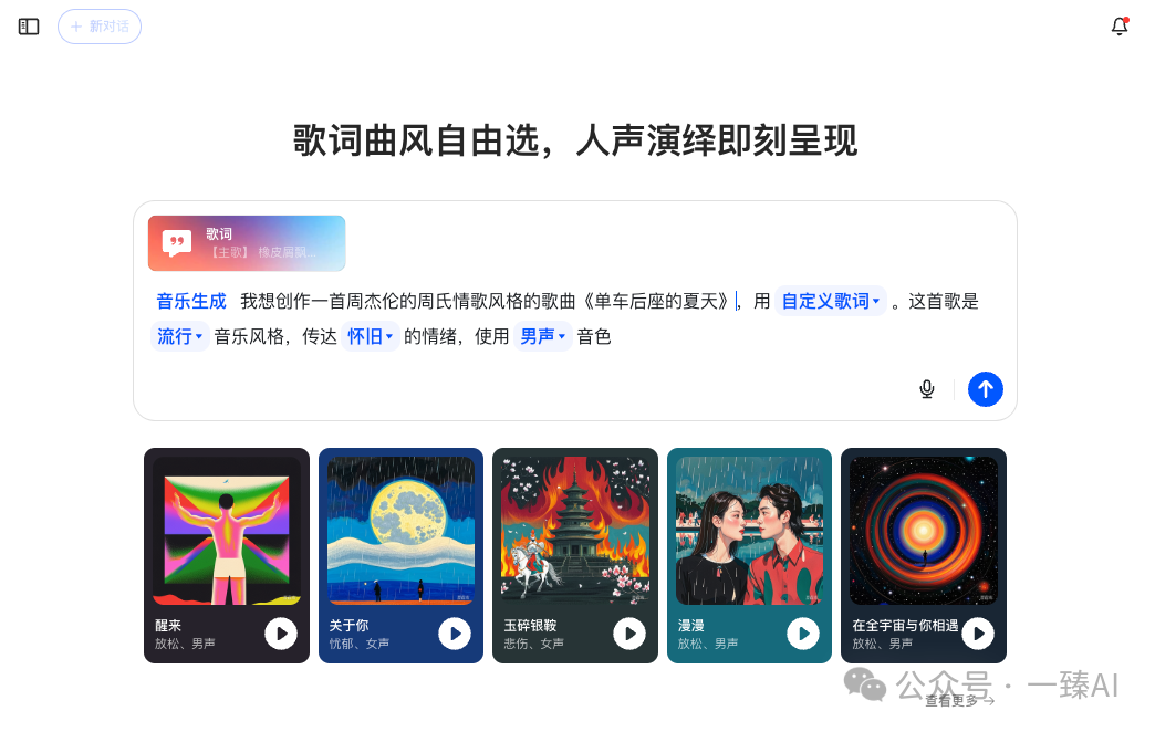 等待不如行动,今天一起借助AI谱一首新曲,创作一首你的专属情歌。