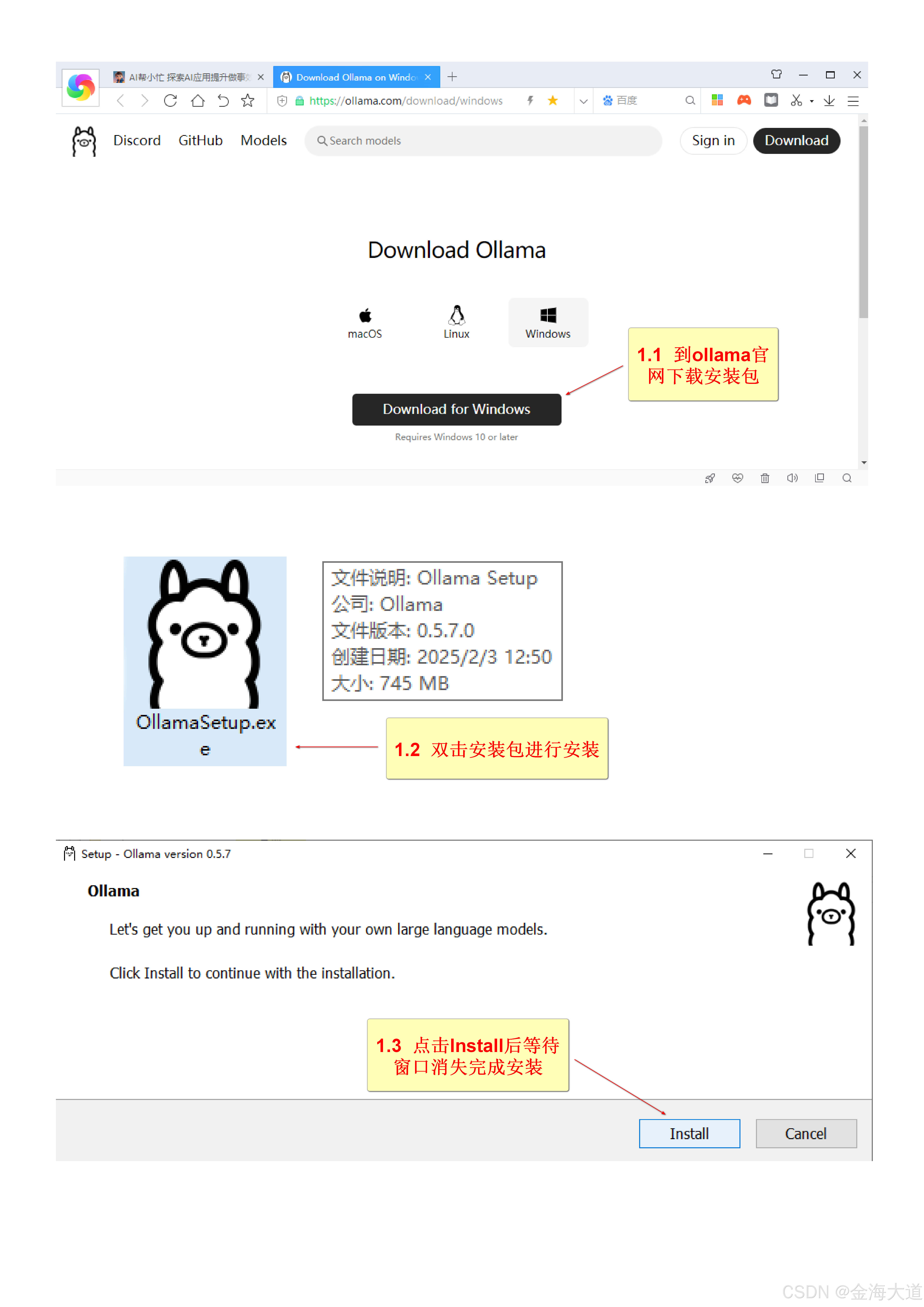 第一步 下载、安装ollama