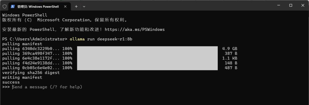 7、下载完成后稍微等待,看到success,即部署完成。