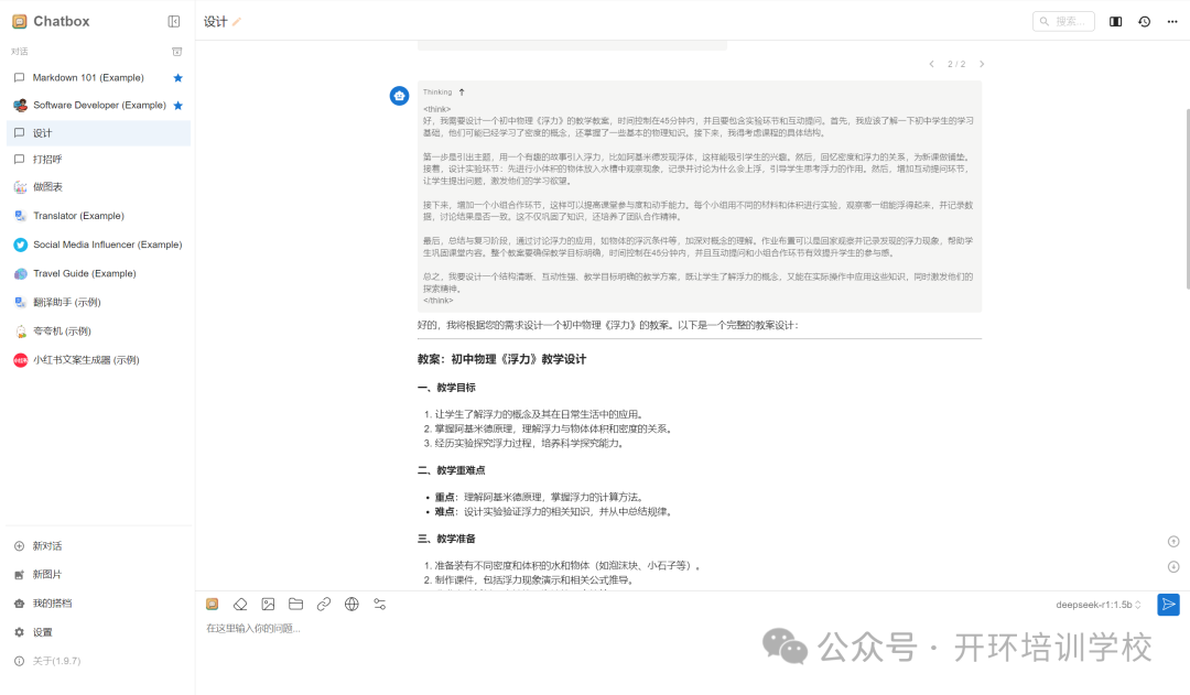 通过Ollama+Chatbox的本地化部署,教师可彻底摆脱网络依赖,在保障数据安全的前提下,快速生成高质量教案。DeepSeek的灵活性与国产模型的天然中文优势,使其成为教育信息化进程中的得力助手。立即部署,体验AI赋能的高效教学新时代!