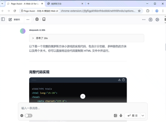 首先进行实操的测试,使用32b本地化模型生成代码测试,我们输入提示词