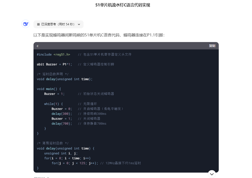 使用DeepSeek编写C语言代码,实现蜂鸣器响停。