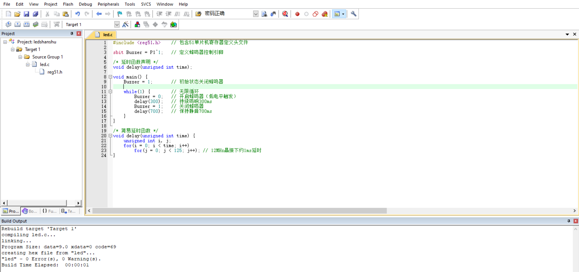 sbit Buzzer = P1^1; // 定义蜂鸣器控制引脚