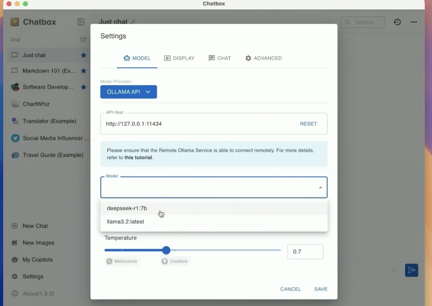 配置 Chatbox 连接本地 DeepSeek: