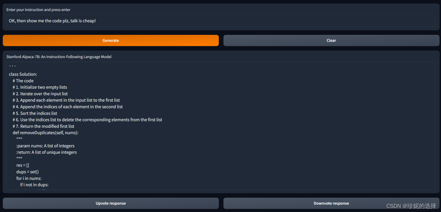 代码刚放出来不久,我先 mark 一下,趁代码量还比较少的时候赶紧看看,否则后面代码越多看不过来🤣。简单看了下这个开源库,发现一些挺有意思的现象,待会分享,先说下 Alpaca 的体验。