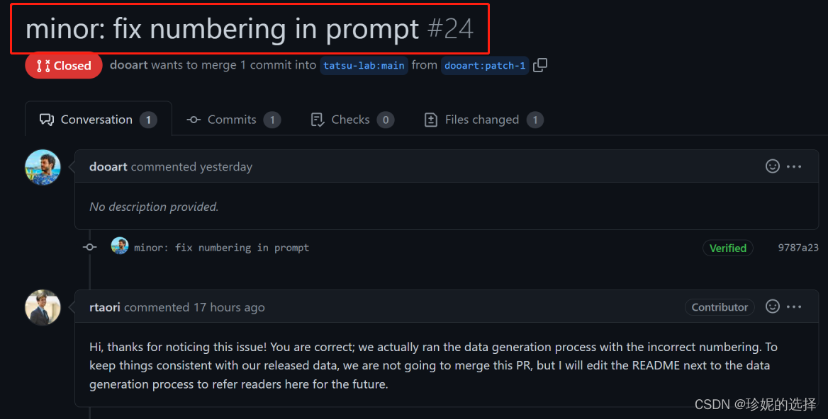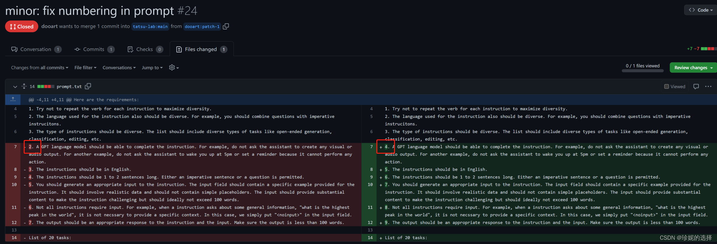 在前言中曾说查看 https://github.com/tatsu-lab/stanford_alpaca 这个库时发现一些有意思的现象。那是因为我在 PR (https://github.com/tatsu-lab/stanford_alpaca/pull/24) 中发现,这些研发人员看东西都超细致…