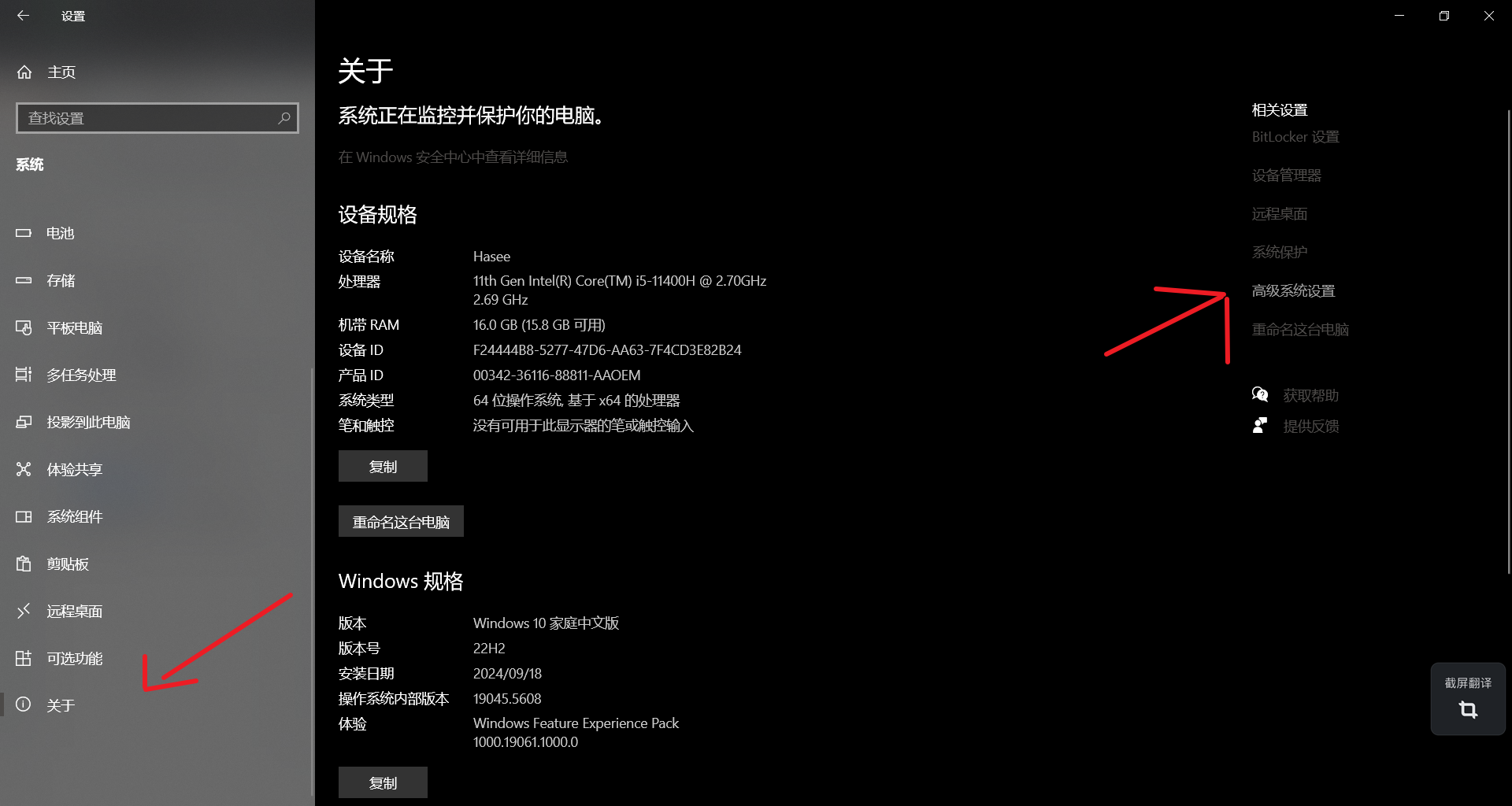 首先在windows设置中找到系统——>"关于"——>高级系统设置(作者这里使用的是window10,不同的系统设置的位置不同),但步骤相同