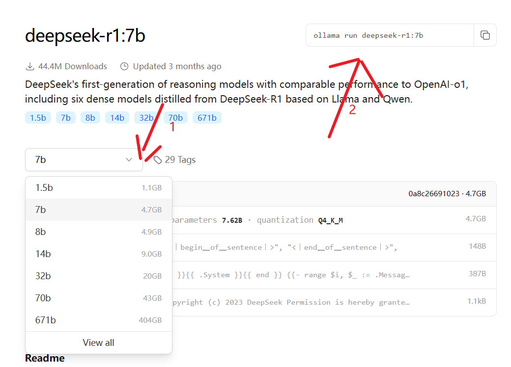 选择自己安装的模型大小后复制右上角的命令,在windows电脑的命令行粘贴后运行即可(命令行快捷键:Win+R)