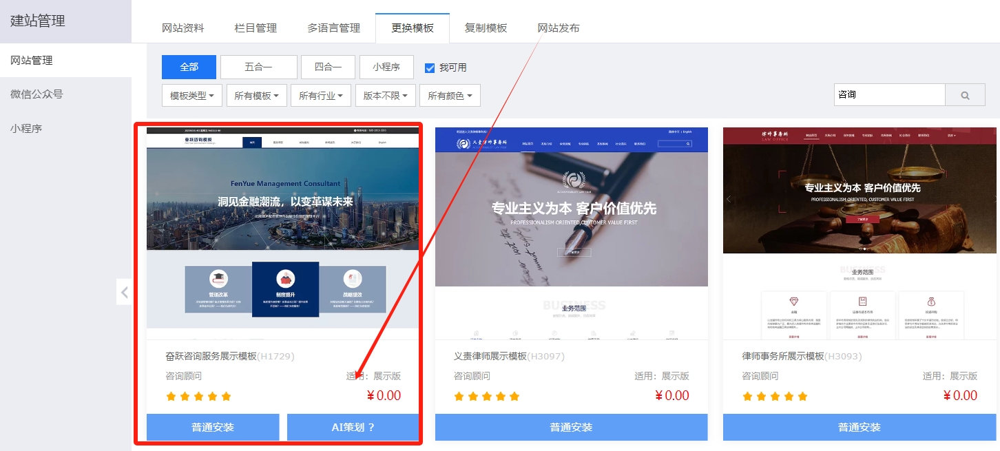 进入建站系统后,我首先在腾讯云建站提供的众多模板中,挑选了一个最适合金融咨询行业的模板。这个模板的首页设计简洁大气,能够突出我们的专业形象;内页布局清晰合理,方便客户浏览和获取信息。