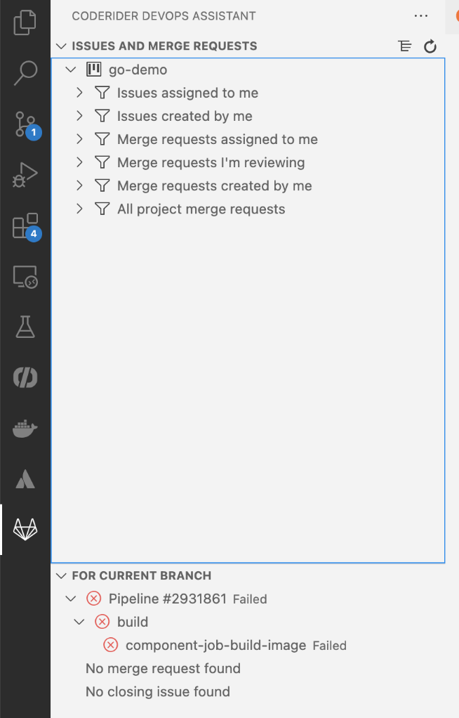 1.在 VSCode 左侧导航栏中选择CodeRider DevOps Assistant: