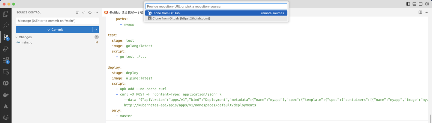 - 在 VSCode 中打开 Source Control 面板(侧边栏 Git 图标)。