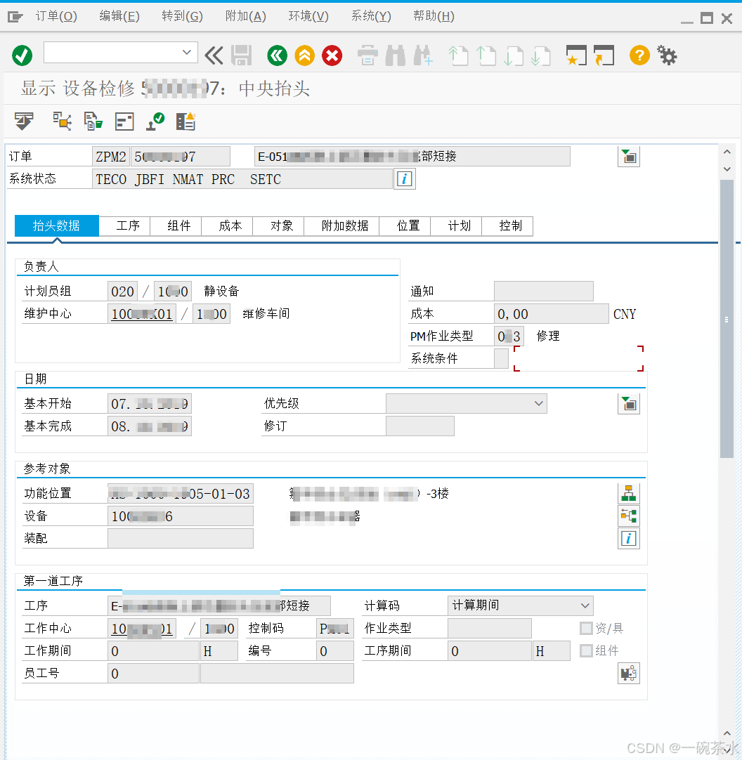 | TECO (技术完成) | IW38 | 确认工作完成 | 关闭工序,停止成本记账 |