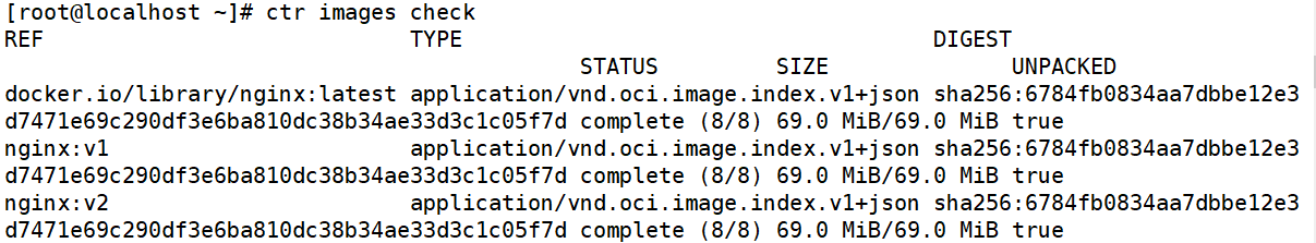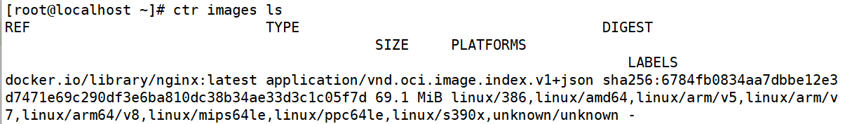 [root@localhost ~]# ctr images pull docker.io/library/nginx:latest --all-platforms