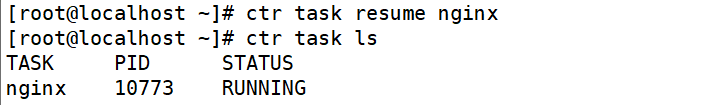 虽然已经删除了任务,但是创建容器的时候,也创建了一个同名的快照,即便已经删除了任务,也可以使用“ctr task start -d nginx”命令,利用此快照将已删除的任务启动起来,使得此容器恢复运行。