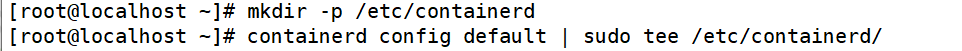 - 使用 sudo tee /etc/containerd/config.toml以管理员权限创建或覆盖/etc/containerd/config.toml文件,并将之前获取的配置信息写入其中。