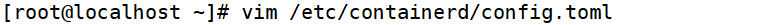 - /etc/containerd/config.toml 是 containerd的配置文件路径,这里指定了配置文件的具体位置。