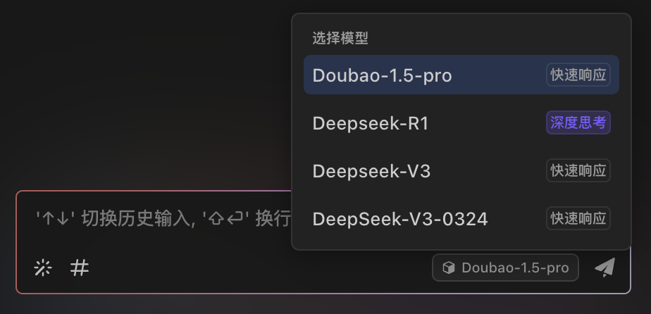 点击插件右下角可以切换模型,目前支持以下几种模型: