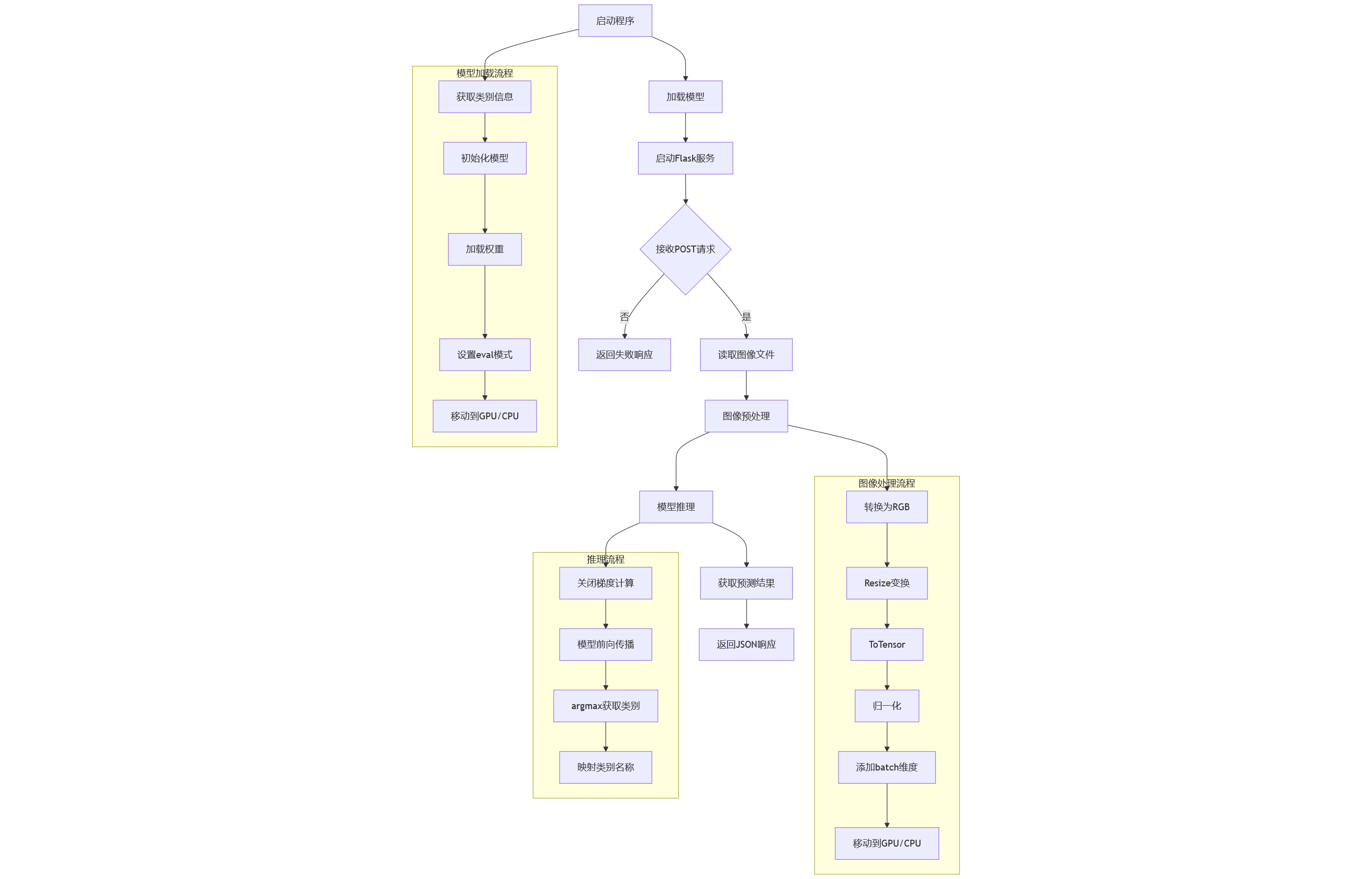 flask_server.py核心实现了三个方法,分别是模型加载,图片预处理,请求处理。其中图片预处理基本不需要调整。