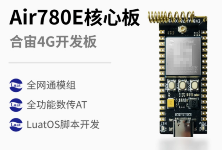 本demo使用的是 Air780E 核心板,如下图所示: