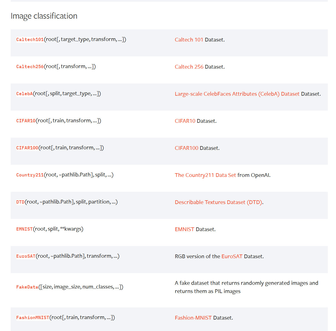 我拿来用的是数据集:CIFAR10root:将数据集存放在哪里True: 下载的是训练数据集(训练模型使用)False: 下载的是测试数据集(测试模型是否学会,和训练集的数据不同)transform:对数据集做哪些操作target_transform :对标签做哪些操作download :若数据不存在是否从官网下载(因为这里的数据集也是可以通过第三方渠道下载后直接引用的)DataLoader简单来