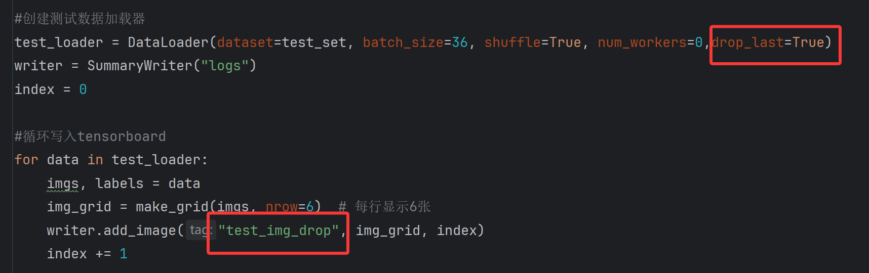 - drop_last:假设一共有82张图,每次加载9张,最后1张是否需要加载