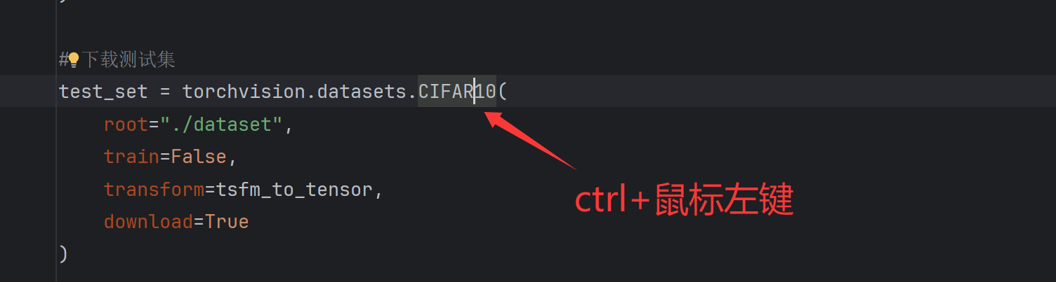 对了,如果因网速问题,下载数据集太慢的话,可以按住ctrl键,进入数据集函数的内部查看URL链接,复制到迅雷下载