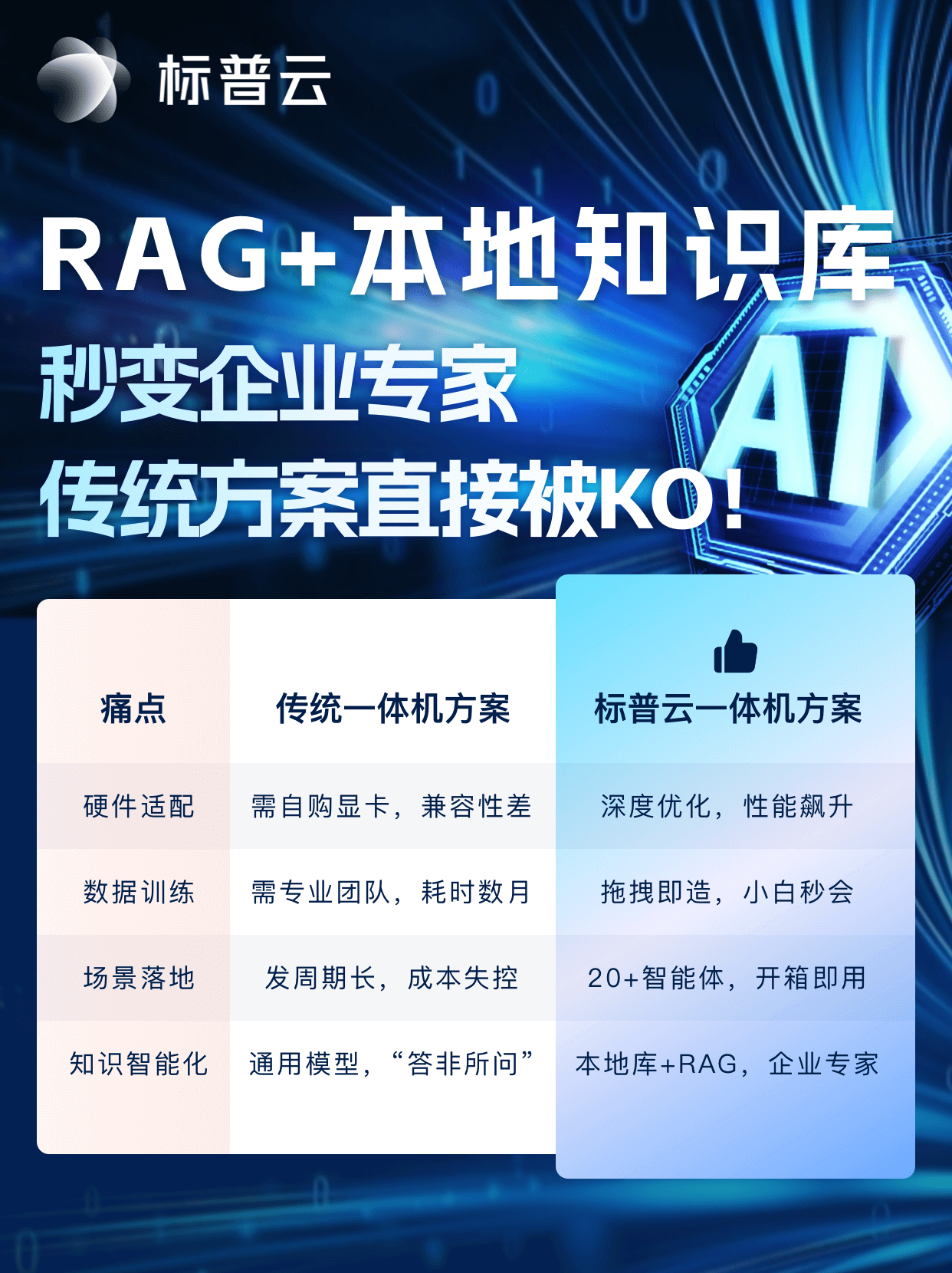 而在这个过程中,企业搭建本地知识数据库,部署一体机,是让行业大模型结合通用大模型落地见效,逐步稳健构建企业长期核心竞争力的最有效方式。