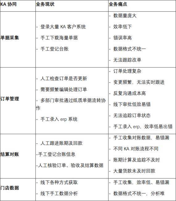 二、KA经营协同业务现状及业务痛点