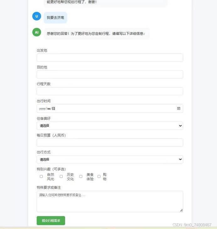基于此反馈,我们推出根据用户输入内容自动提取关键词进行推荐的方式。利用自然语言处理技术中的分词算法和词性标注技术,快速识别用户输入中的关键信息,如地点、时间、兴趣点等。通过构建语义理解模型,对关键词提取算法进行优化,提升对模糊或隐含信息的提取能力。例如,当用户输入 “我想去济南玩,喜欢那种有山有水的地方”,系统能够准确提取出 “济南”“自然风光” 等关键信息,并据此向大模型 api 发送请求获取推荐结果。经过反复调试和大规模用户反馈收集,目前这种自动提取关键词的输入模式得到用户广泛认可,大大提高了用户输入的便捷性和推荐结果的相关性,显著优化了用户交互体验。