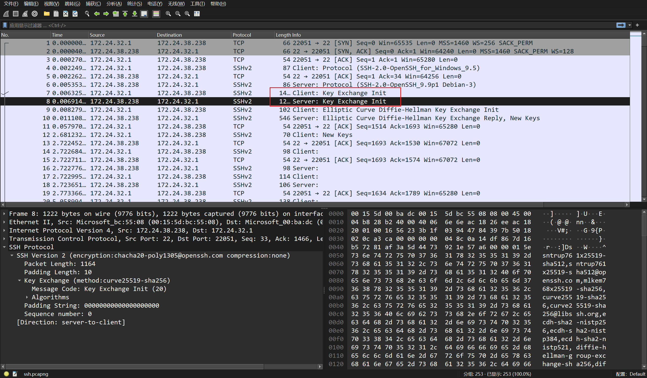 diffie-hellman-group14-sha256、curve25519-sha256等常见算法。 - 加密算法:如 aes256-ctr、aes128-ctr 等,用于对称加密数据传输, 客户端和服务器会从中选择一个双方都支持的加密算法。