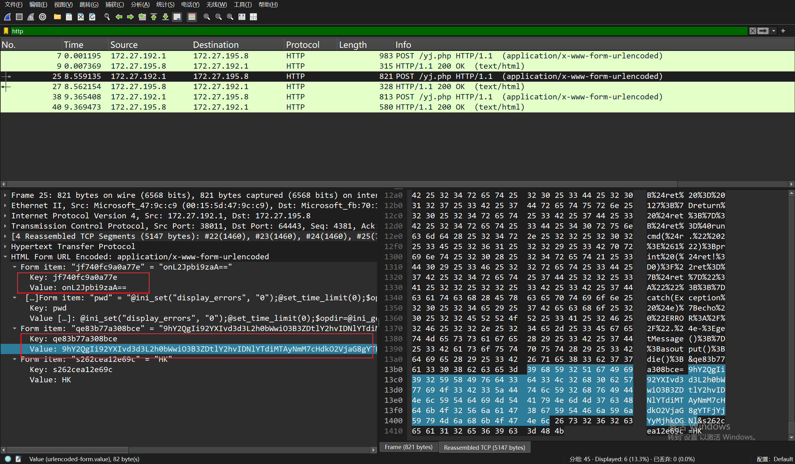 第9个包的内容是VXNlcm5hbWU6,通过base64解码,得到Username:,表示此数据包是 SMTP 协议身份验证过程中的第二步,服务器提示客户端发送用户名。