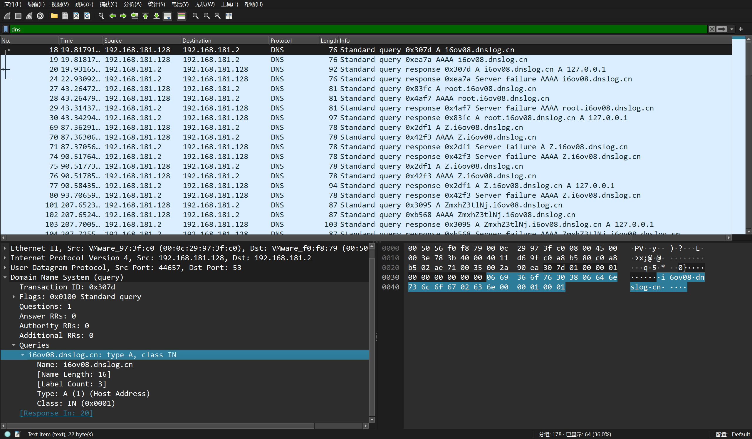 查询的记录类型是 A(Address),即查询 i6ov08.dnslog.cn 的 IPv4 地址。