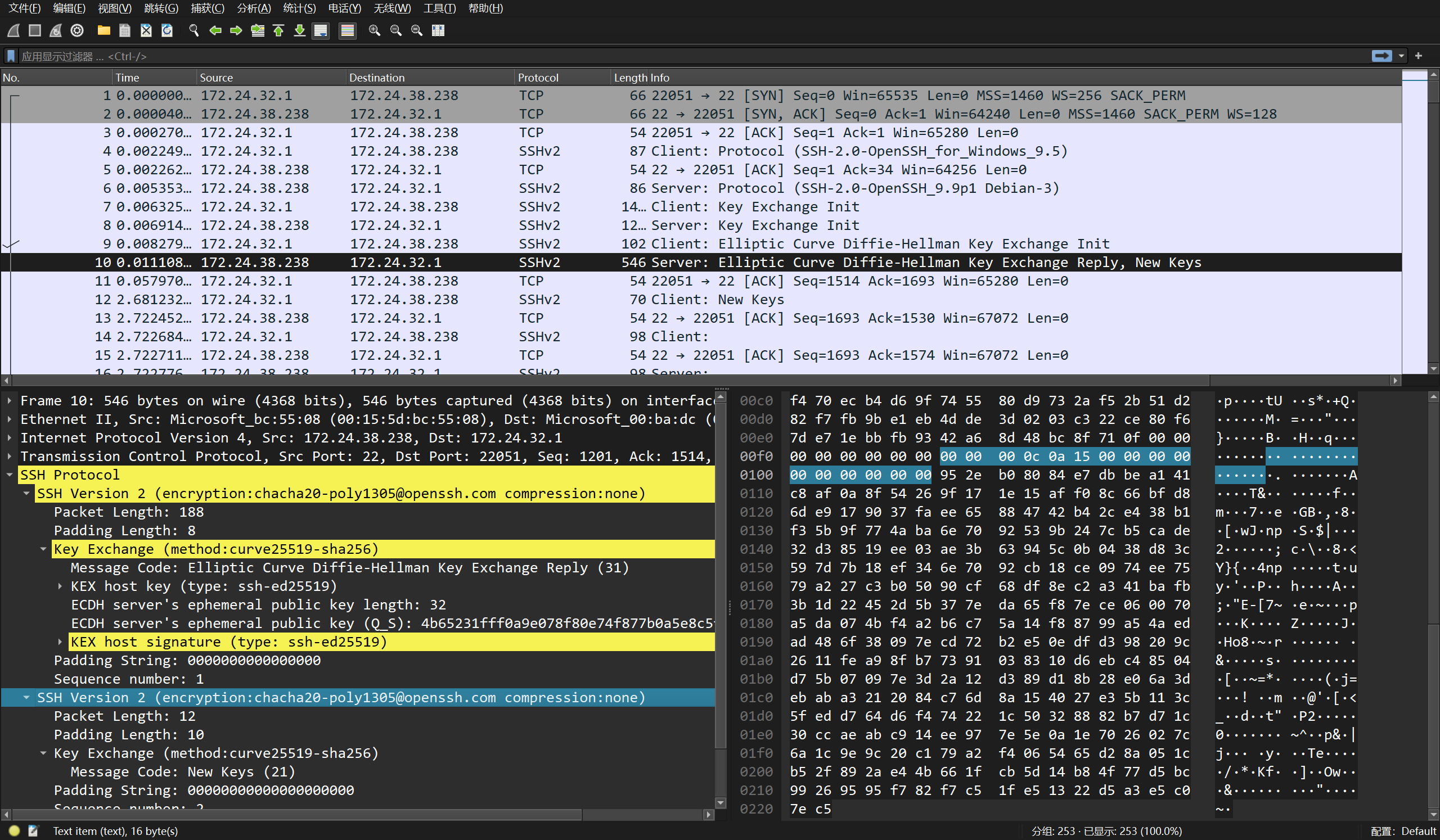 这是 SSH 握手流程的最后一步,标志着密钥交换成功并切换到加密通信。