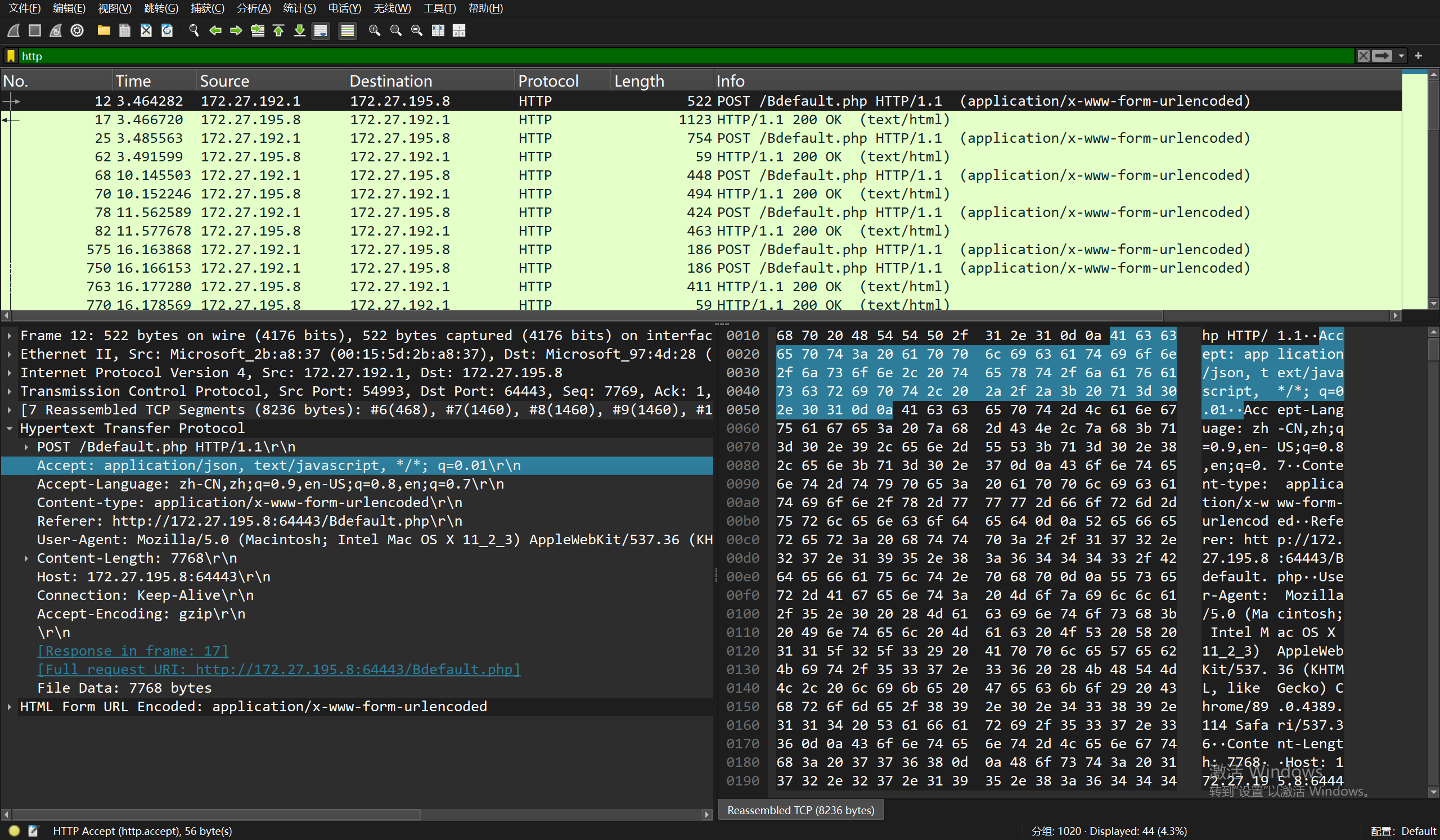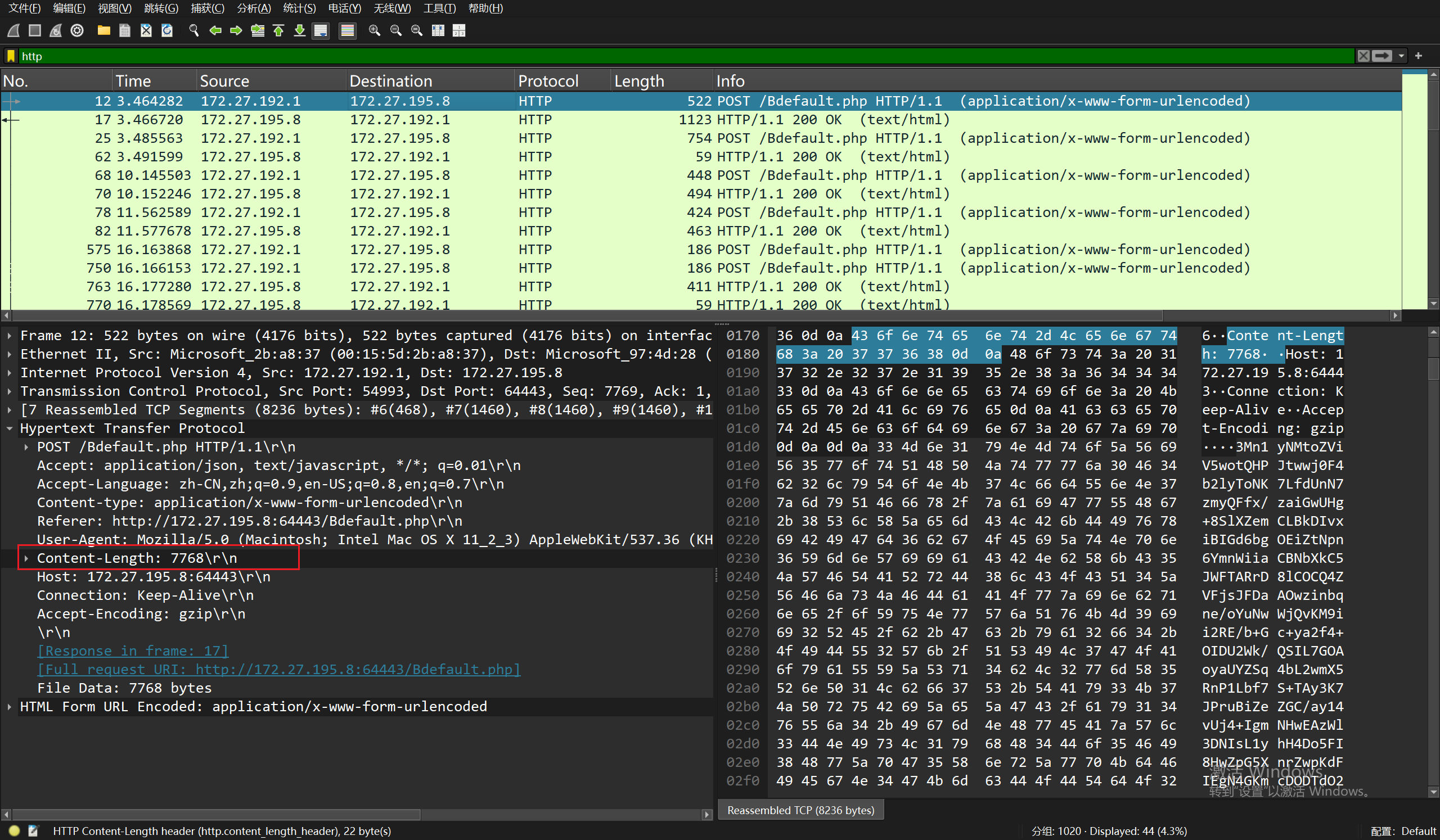 一行叫包,TCP整个通信过程叫流,包括tcp的三次握手,四次挥手,基于tcp连接的上层协议例如http等数据包的合集。