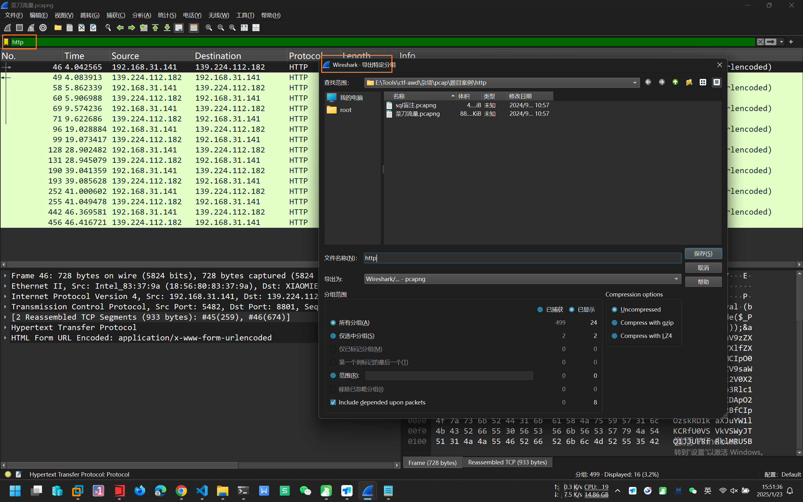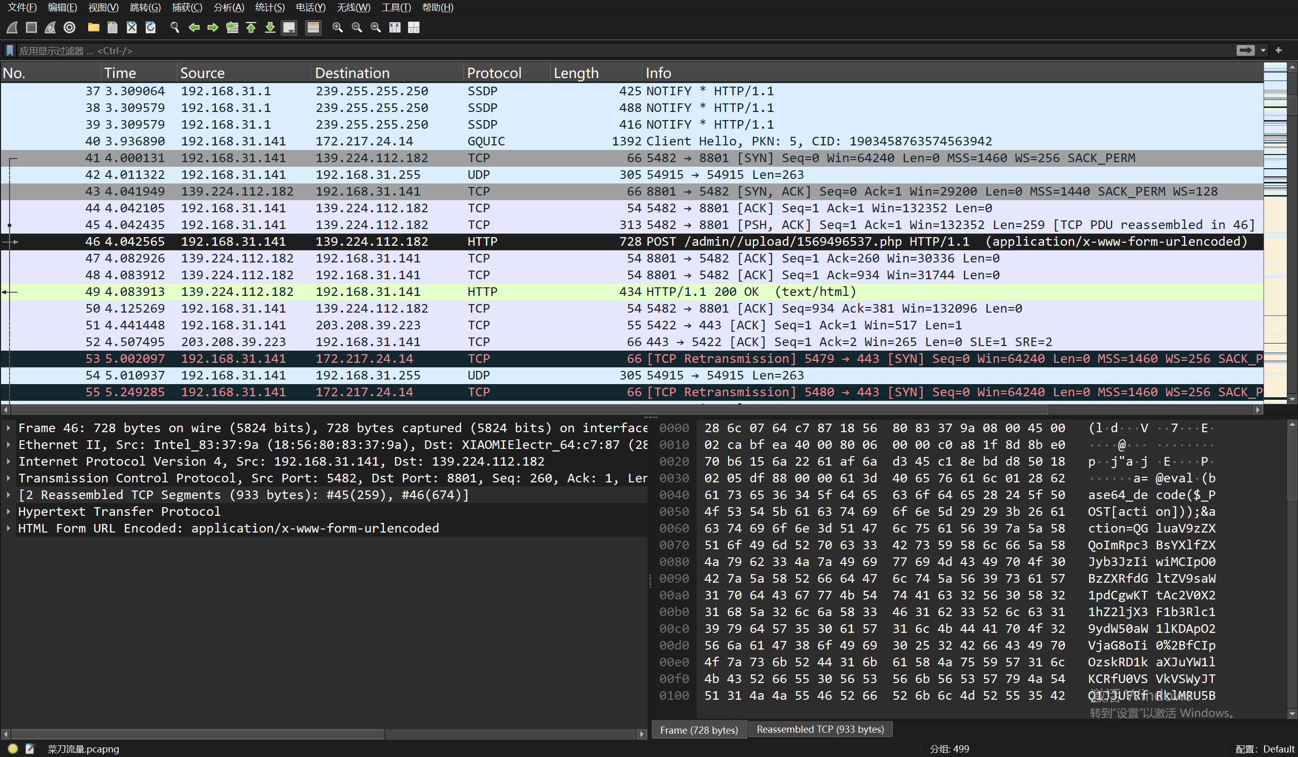一行叫包,TCP整个通信过程叫流,包括tcp的三次握手,四次挥手,基于tcp连接的上层协议例如http等数据包的合集。损坏的数据包https://f00l.de/hacking/pcapfix.phptshark在Linux命令行中,在没有图形化的操作系统中,使用tshark命令捕获网络流量监听eth0网卡分析SMTPSMTP (Simple Mail Transfer Protocol) 是一种