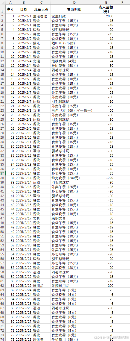 最近总是感觉自己每个月的现金支出速度非常快,而且似乎不太合理。附件是2月份的所有现金流量明细,